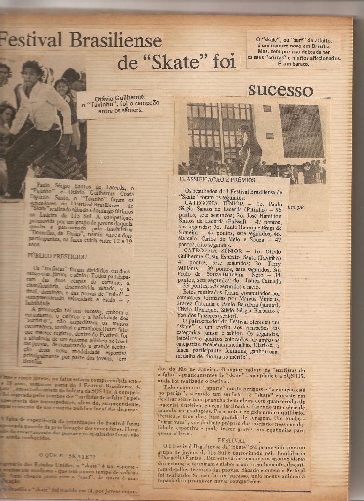 Vale lembrar que eu não ganhei o campeonato, quem ganhou, e com todos os méritos, foi o Tavinho. O verdadeiro primeiro campeão de skate da história de Brasília. O resto é história, que os skatistas que vieram depois continuaram a escrever com muito mais habilidade e manobras muito mais radicais do que as que fazíamos.